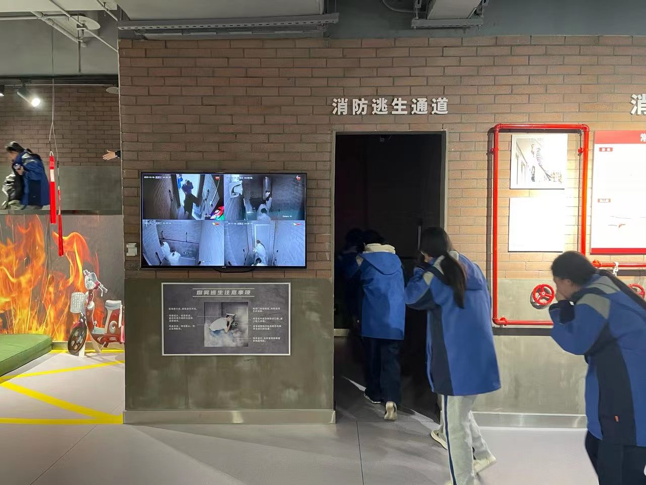 在地震体验馆,学生们体验了在地震时如何做到自救逃生;在5D影院,学生体验并感知了在恶劣天气下如何逃生,以及如何在火灾中、公交车上如何逃生等知识。